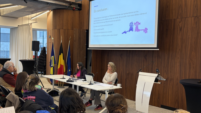 La Ville de Bruxelles, représentée par Frédérique Joly et Sandrine Trenoye, a partagé des expériences issues de ses crèches communales. Leurs témoignages ont illustré comment une réflexion quotidienne sur les interactions, l’aménagement des espaces ou encore les jeux proposés peut contribuer à un accueil plus égalitaire.